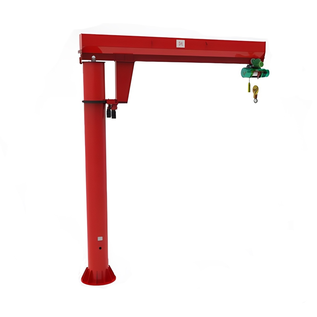 BZD型電動全回轉懸臂起重機是與CD1MD1型電動葫蘆配套使用的一種起重機,本起重機由立柱,回轉臂回轉驅動裝置及電動葫蘆組成,立柱下端通過地腳螺栓固定  在混凝土基礎上,由擺線針輪減速裝置來驅動懸臂回轉,電動葫蘆在懸臂工字鋼上作左右直線運行,并起吊重物。定柱式旋臂起重機由立柱裝置、回轉裝置、旋臂裝置及環鏈電動葫蘆等組成,主要包括上立柱、下立柱、主梁、主梁拉桿、起升機構(環鏈電動葫蘆)、回轉機構、電氣系統、爬梯及檢修平臺。立柱下端固定于混泥土基礎上,旋臂回轉,可根據用戶需求進行回轉。回轉部分分為手動回轉和電動回轉。環鏈電動葫蘆安裝在旋臂軌道上,用于起吊重物