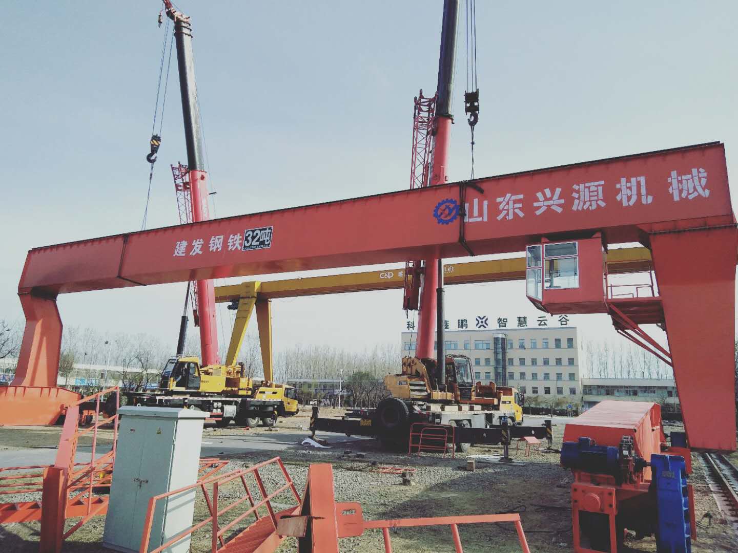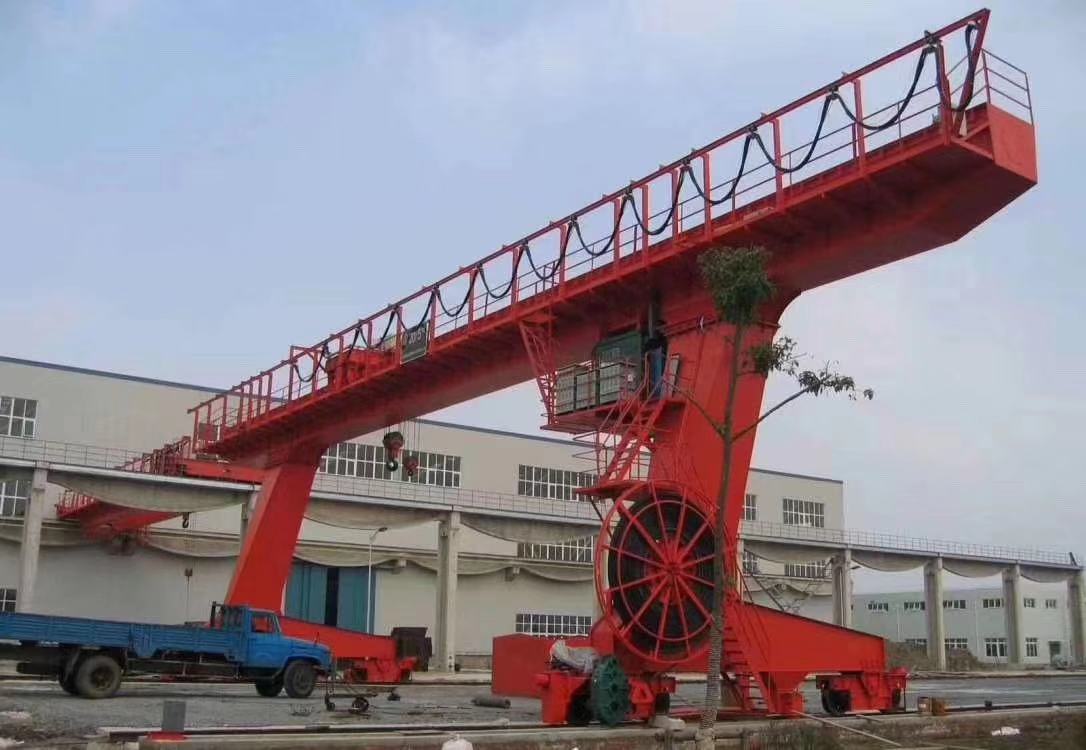 單主梁門式起重機主梁多為偏軌箱型架結構。單主梁門式起重機門腿有L型和C型兩種形式。支腿做成傾斜或彎曲形,目的在于有較大的的橫向空間,以使貨物順利通過支腿。