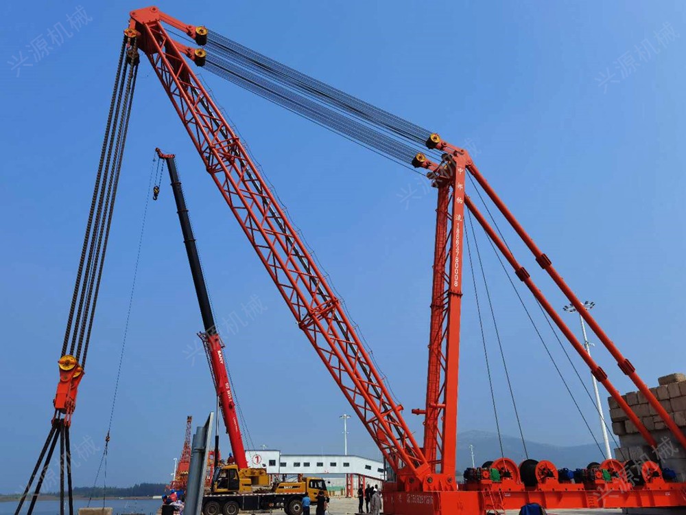 桅桿式起重機(jī)桅桿式起重機(jī),固定安裝的起重機(jī),一般用于港口碼頭桅桿式起重機(jī)又稱為拔桿或把桿,是最簡(jiǎn)單的起重設(shè)備。一般用木材或鋼材制作。這類起重機(jī)具有制作簡(jiǎn)單、裝拆方便,起重量大,受施工場(chǎng)地限制小的特點(diǎn)。 特別是吊裝大型構(gòu)件而又缺少大型起重機(jī)械時(shí),這類起重設(shè)備更顯它的優(yōu)越性。但這類起重機(jī)需設(shè)較多的纜風(fēng)繩,移動(dòng)困難。另外,其起重半徑小,靈活性差。因此,桅桿式起重機(jī)一般多用于構(gòu)件較重、吊裝工程比較集中、施工場(chǎng)地狹窄,而又缺乏其它合適的大型起重機(jī)械時(shí)。