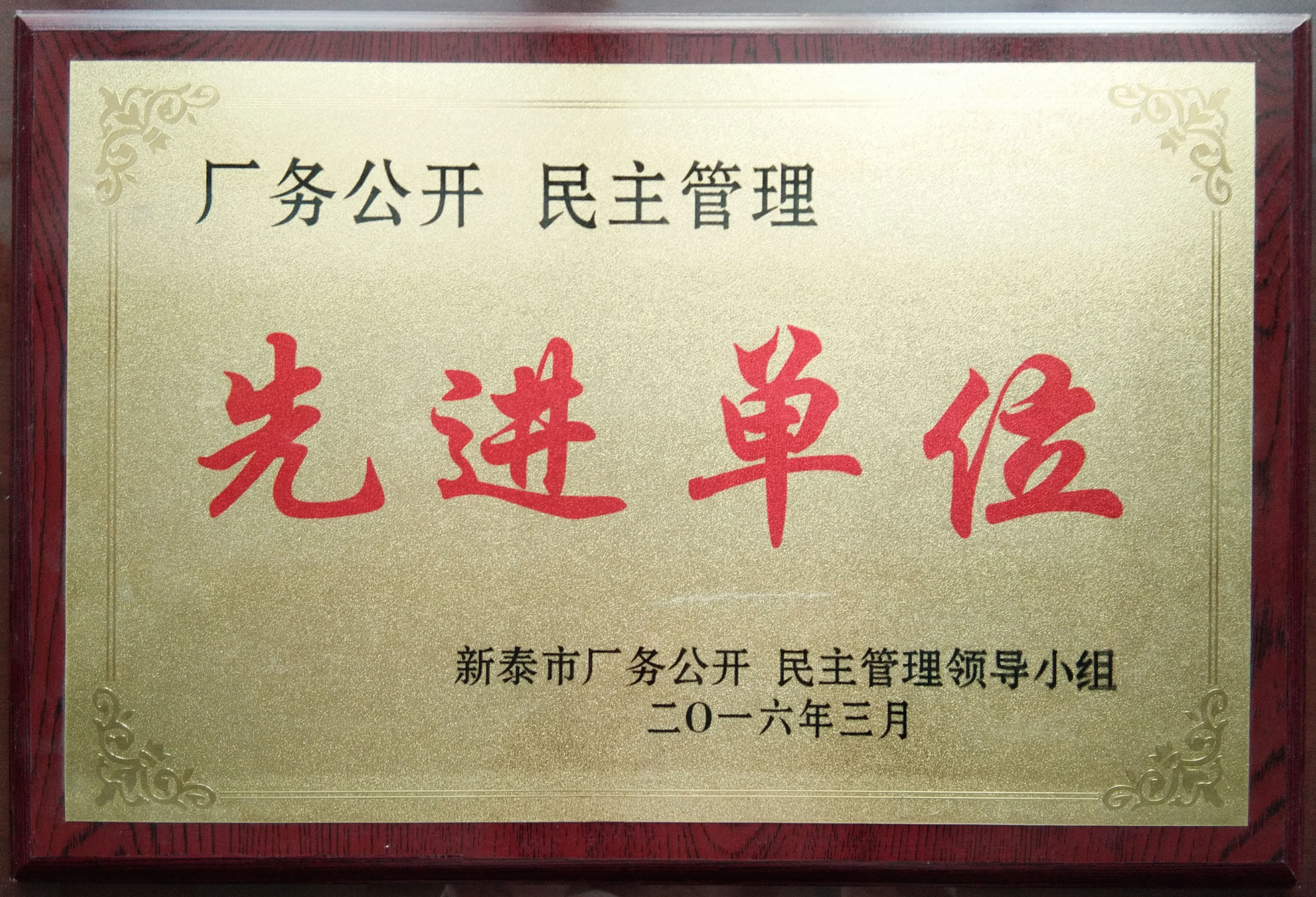 山東興源機(jī)械有限公司于20163月獲得山東新泰市廠務(wù)公開,民主管理領(lǐng)導(dǎo)小組頒布的“先進(jìn)單位”榮譽(yù)