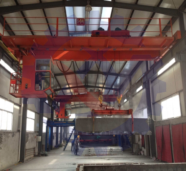 是橋架兩端通過運(yùn)行裝置直接支撐在高架軌道上的橋架型起重機(jī)。它由橋架(包括主梁和端梁)、起重小車、大車運(yùn)行機(jī)構(gòu)和電氣控制系統(tǒng)等部分組成。起重小車上裝有起升機(jī)構(gòu)和小車運(yùn)行機(jī)構(gòu)在橋架主梁上沿小車軌道橫向運(yùn)行;起重機(jī)沿廠房或露天貨場的高架軌道縱向運(yùn)行,其掛梁方向分為與主梁平行和與主梁垂直兩種,并在掛梁下方裝有電磁吸盤,通過電磁吸盤完成物料搬運(yùn)工作。