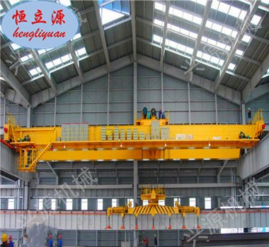 適用干冶金工廠在室內(nèi)或露天的固定跨間較繁重地裝卸及搬運具有磁性的黑色金屬制品與材料(如鋼錠、型鋼、生鐵塊)在機械廠。庫房中也常有來搬運鋼料、鐵塊、廢鐵、廢鋼、鐵屑等物料。